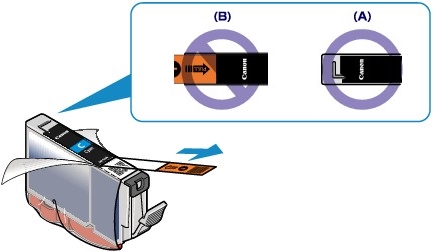 وإذا تم ترك الشريط البرتقالي كما في (‏B)‏، فاسحب الشريط البرتقالي وقم بإزالته.