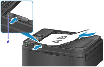 Adjust the document guide (A) at the front of the machine to match the width of the document.