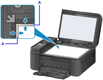 Uređaj ne može skenirati iscrtkano područje (A) (1 mm (0,04 inča) od rubova kopirnog stakla).
