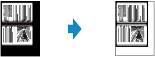 Kad je UKLJUČ. (ON) odabrano za stavku Kopiraj s bris. ruba (Frame erase copy) u opciji Uobičajeno kopiranje (Standard copy), možete izvršiti kopiranje bez crnih margina oko slike i sjena uveznih margina pri kopiranju debelih izvornika, poput knjiga. Koristeći ovu funkciju, možete smanjiti nepotrebnu potrošnju tinte.