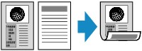 Nastavitev dvostranskega kopiranja lahko uporabljate skupaj z možnostjo Kopija 2 na 1 (2-on-1 copy) ali Kopija 4 na 1 (4-on-1 copy).