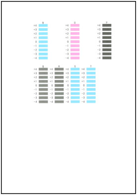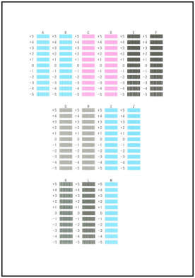Oglejte si drugi vzorec, tapnite N, da preverite natisnjene vzorce, nato tapnite številko vzorca v stolpcu N, ki ima najmanj opazne vodoravne proge.