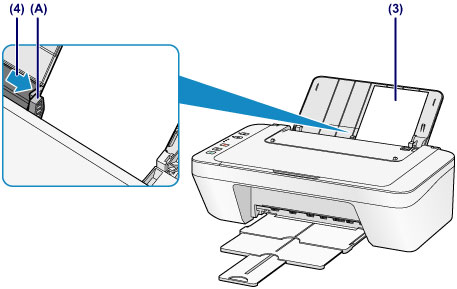 Slide the paper guide (A) to the left, and load the envelopes against the far right of the rear tray WITH THE PRINT SIDE FACING YOU.