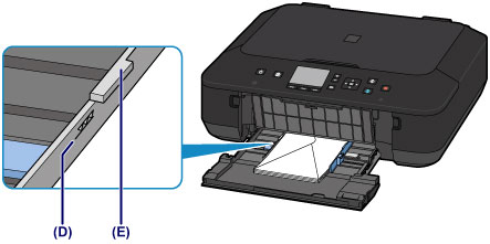 (4) Padėkite vokus ant tiektuvo vidurio ADRESO PUSE ŽEMYN.