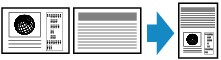 Ko v razdelku Standardno kopiranje (Standard copy) za Post. (Layout) izberete Kopija 2 na 1 (2-on-1 copy), lahko dve strani izvirnika kopirate na en list papirja, tako da vsako sliko zmanjšate.
