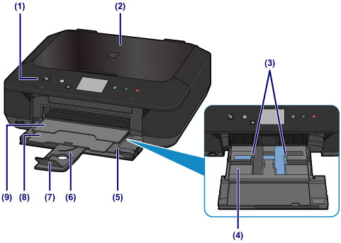 Naudokite norėdami keisti įrenginio parametrus arba jį valdyti. Taip pat pakelkite ir atidarykite jį norėdami pakeisti rašalo talpyklą, patikrinti rašalo lemputę arba ištraukti įrenginyje įstrigusį popierių.