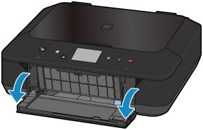 Atveriet darbības paneli (A), pēc tam atveriet papīra izvades uztvērēju (B).