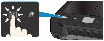 - Ko izključite napajalni kabel, pritisnite gumb VKLOP (ON), nato pa se prepričajte, da lučka za VKLOP (POWER) sveti. Če napajalni kabel izključite, ko lučka VKLOP (POWER) sveti ali utripa, se lahko tiskalna glava posuši ali zamaši, kakovost tiskanja pa se lahko poslabša.