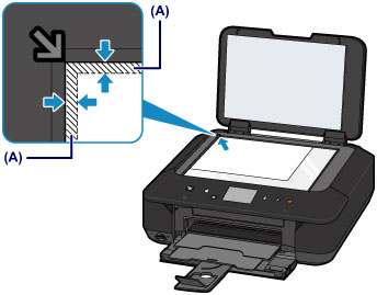 Naprava ne more optično brati na območju, označenem z diagonalnimi črtami, (A) (1 mm (0,04 palca) od robov steklene plošče).