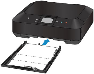 (8) Į kasetę (apačioje) įdėkite tik šį popieriaus lapą; jį dėkite taip, kad linkiai būtų nukreipti į viršų, o nesulenktos lapo pusės kraštas būtų toliau nuo jūsų.