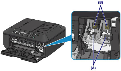 - The area around the parts (A) may be splattered with ink. This does not affect the performance of the machine.