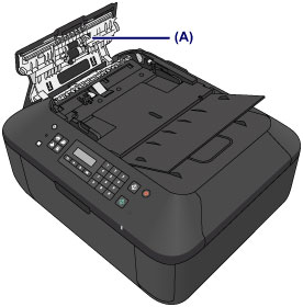Paruoštu audiniu nuvalykite popieriaus dulkes nuo vidinės dokumentų tiektuvo dangčio (A) pusės.