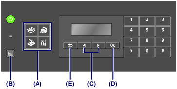 (C), lai atlasītu vienumu vai opciju, pēc tam nospiediet pogu Labi (OK) (D), lai turpinātu procedūru.