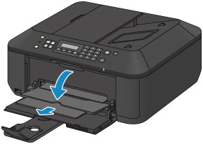 Svarbu- Spausdindami būtinai atidarykite popieriaus išvesties dėklą. Jei jo neatidarysite, įrenginys negalės pradėti spausdinti.