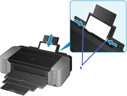 Povucite vodilice papira (E) da se poravnaju s obje strane hrpe papira.