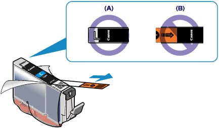 Ja oranžā lente ir palikusi, kā redzams attēlā (B), pavelciet un noņemiet to.
