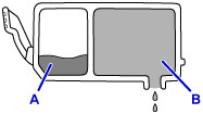 V notranjosti črnilnega vložka je del (A), kjer je črnilo, in goba (B) z vpitim črnilom.