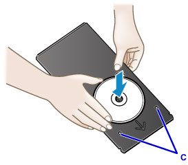 - Prilikom stavljanja ispisnog diska na pliticu za disk, pazite da ne dodirujete ispisnu površinu diska ili reflektore (C) na plitici za disk.