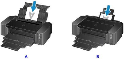 Novietojiet papīru uz aizmugures paliktņa vai ievietojiet manuālās padeves uztvērējā atkarībā no papīra izmēra vai biezuma.