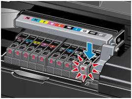 - Če želite podrobnosti o različnih hitrostih utripanja lučke za črnilo, glejte Preverjanje stanja črnila z lučkami za črnilo.