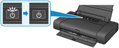 - Norėdami atjungti maitinimo laidą, paspauskite mygtuką Įjungti (ON) ir įsitikinkite, kad nedega lemputė MAITINIMAS (POWER). Jei maitinimo laidą atjungsite dar neužgesus lemputei MAITINIMAS (POWER), spausdinimo galvutė gali uždžiūti arba užsikimšti ir dėl to gali suprastėti spausdinimo kokybė.