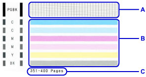 - Purkštukų patikros spaudinyje rodomas bendras išspausdintų lapų kiekis (po 50).