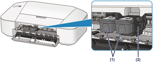 Spalvoto rašalo kasetę FINE reikia įdėti į kairįjį lizdą, o juodo rašalo kasetę FINE – į dešinįjį lizdą.