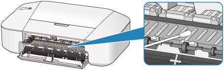 Ja pēc atkārtotas tīrīšanas problēma nav novērsta, iespējams, ir notraipīti izciļņi printera iekšpusē. Noslaukiet no izciļņiem tinti, izmantojot kokvilnas tamponu vai ko līdzīgu.