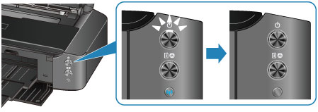 • Atvienojot strāvas vadu, nospiediet pogu Iesl. (ON) un pēc tam pārliecinieties, vai indikators STRĀVA (POWER) nedeg. Ja strāvas vads tiek atvienots, kamēr indikators STRĀVA (POWER) deg vai mirgo baltā krāsā, drukas galviņa var izžūt vai aizsērēt un drukas kvalitāte var pasliktināties.