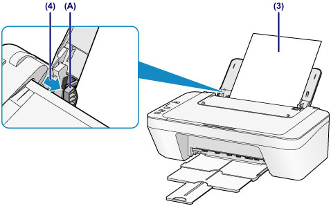 (4) Slide the paper guide (A) to align it with the paper stack.