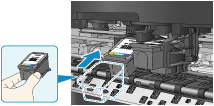 - The machine cannot print unless both the color FINE cartridge and black FINE cartridge are installed. Be sure to install both cartridges.