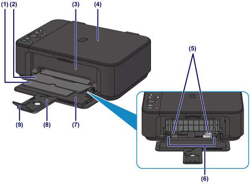 Open to replace the FINE cartridge or remove jammed paper inside the machine.