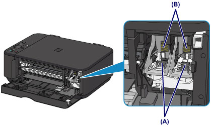 The color FINE cartridge should be installed into the left slot and the black FINE cartridge should be installed into the right slot.