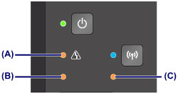 When remaining ink cautions or errors occur, the ink lamps and the Alarm lamp will flash orange to inform you of the error. Count the number of flashes and take appropriate action.