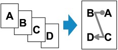 Če uporabljate to funkcijo v kombinaciji, lahko kopirate osem strani izvirnika na en list papirja. V tem primeru se na vsako stran papirja kopirajo štiri strani izvirnika.