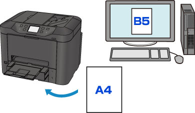 Ad esempio, quando l'impostazione carta per la stampa o la copia è B5 e le informazioni della carta del cassetto registrate nella macchina sono impostate su A4, la macchina avvia la stampa o la copia con B5 sulla carta caricata nel cassetto.