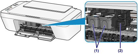 Spalvoto rašalo kasetę FINE reikia įdėti į kairįjį lizdą, o juodo rašalo kasetę FINE – į dešinįjį lizdą.