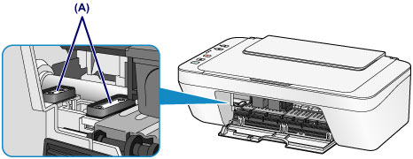 - Aplink dalis (A) esanti sritis gali būti aptaškyta rašalu. Tai neturi įtakos įrenginio darbui.