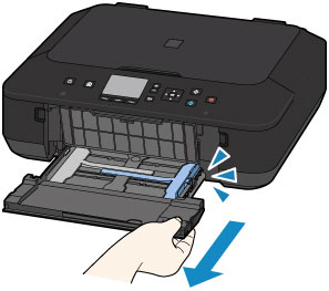 (2) Držite desni jeziček sprednjega pladnja in vlecite podajalnik, dokler se ne ustavi.