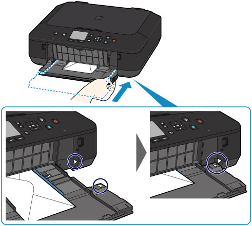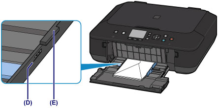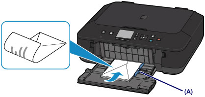 Paslinkdami dešinįjį popieriaus kreipiklį (A) sulygiuokite popieriaus kreipiklius su abiem vokų kraštais.
