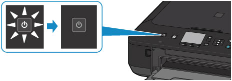 - Ko izključite napajalni kabel, pritisnite gumb VKLOP (ON), nato pa se prepričajte, da lučka za VKLOP (POWER) sveti. Če napajalni kabel izključite, ko lučka VKLOP (POWER) sveti ali utripa, se lahko tiskalna glava posuši ali zamaši, kakovost tiskanja pa se lahko poslabša.