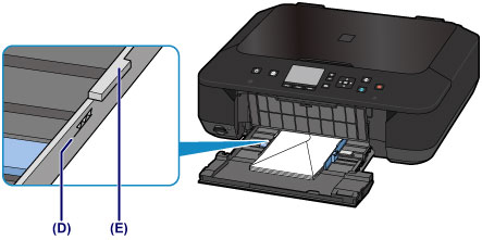 (4) Padėkite vokus ant tiektuvo vidurio ADRESO PUSE ŽEMYN.