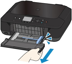 (2) Držite desni jeziček sprednjega pladnja in vlecite podajalnik, dokler se ne ustavi.
