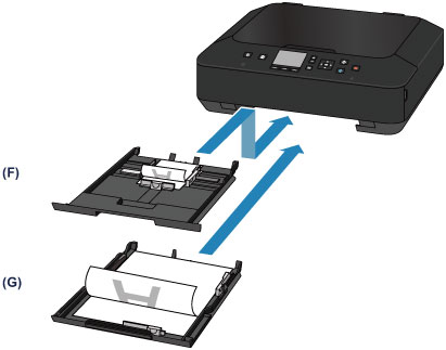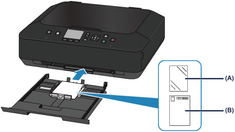 L判、2L判、KGサイズなど、小さいサイズの写真用紙やはがきに印刷するときは、カセット(上段)にセットします。