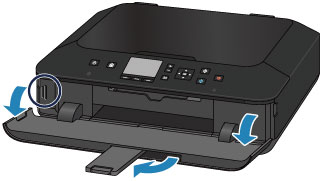 電源を入れ、排紙トレイの左右を持って、ゆっくり手前に開く