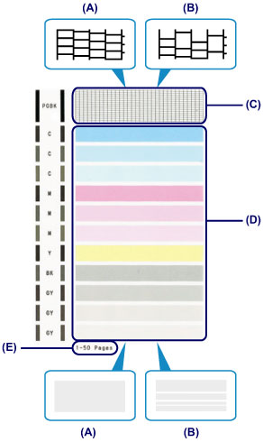 パターン(C)に欠けがないか、パターン(D)に白い横すじが入っていないかを確認する