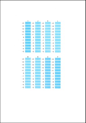 1. 1枚目のプリントヘッド位置調整パターンを見て、プリントヘッド位置を調整する