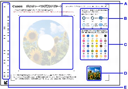 円形の枠の近辺に文字や絵を書くと、印刷のときに欠けることがあります。文字や絵は、枠の近辺には書かないことをお勧めします。