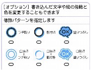 手書き文字や絵の飾りかたにマークを付けたときに、色や模様にマークを付けない場合、自動的に1色指定されます。