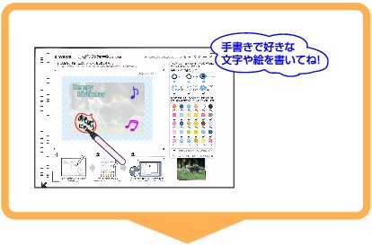 本製品から印刷される手書きナビシートを使って、メモリーカードに保存されている写真と手書き文字や絵を合成して印刷することができます。